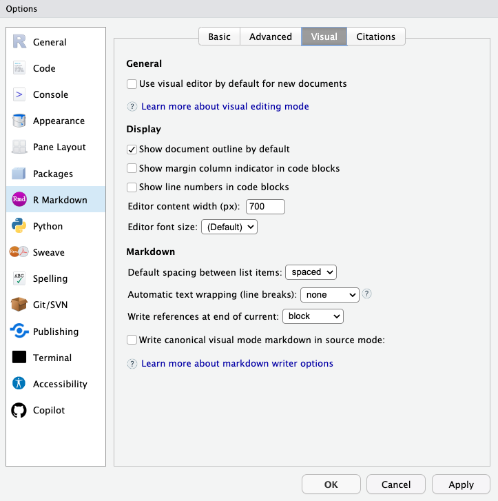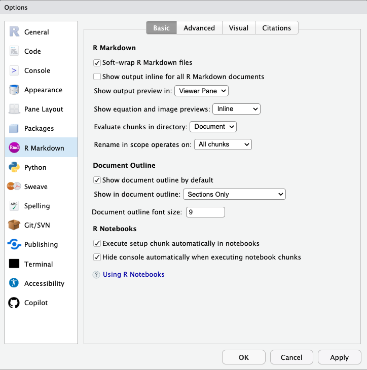 Then, go to the R Markdown tab. Under basic, make sure the following is checked: