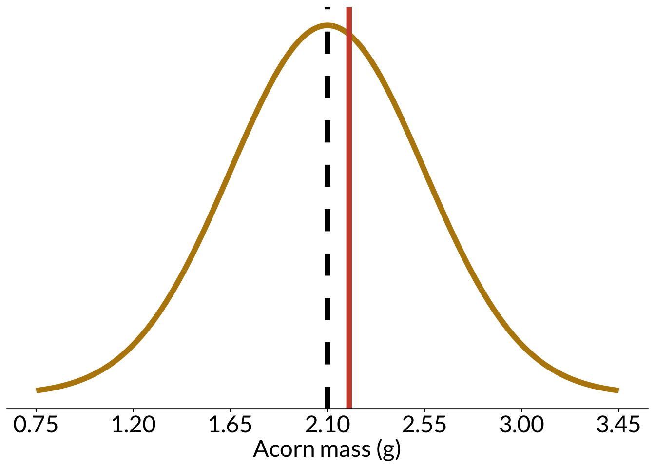 **Example:** You’re told that the mean weight of a coast live oak acorn is $2.1 g$. You question that claim.