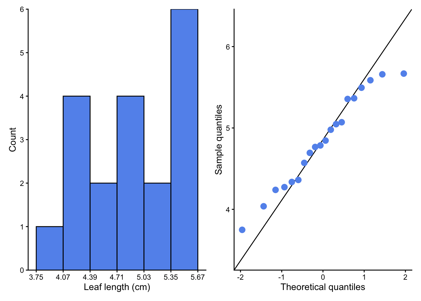 labs(x = "Theoretical quantiles", y = "Sample quantiles")