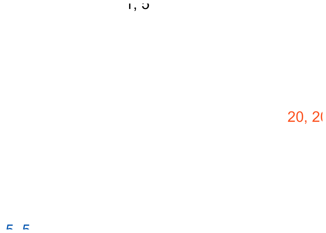 ggplot(data.frame(x =seq(from =0, to =4, by =0.1)), aes(x)) +stat_function(geom ="line", fun = df, args =list(df1 =20, df2 =20), color ="#FF6B2B", linewidth =1, xlim =c(0, 4)) +stat_function(geom ="line", fun = df, args =list(df1 =5, df2 =5), color ="#0070C0", linewidth =1, xlim =c(0, 4)) +stat_function(geom ="line", fun = df, args =list(df1 =1, df2 =5), linewidth =1, xlim =c(0, 4)) +annotate("text", x =1.5, y =1, label ="20, 20", color ="#FF6B2B", size =8) +annotate("text", x =-0.2, y =0.5, label ="5, 5", color ="#0070C0", size =8) +annotate("text", x =0.5, y =1.5, label ="1, 5", size =8) +scale_y_continuous(expand =c(0, 0)) +theme(axis.text =element_blank(),axis.line =element_blank(),axis.ticks =element_blank(),axis.title =element_blank())