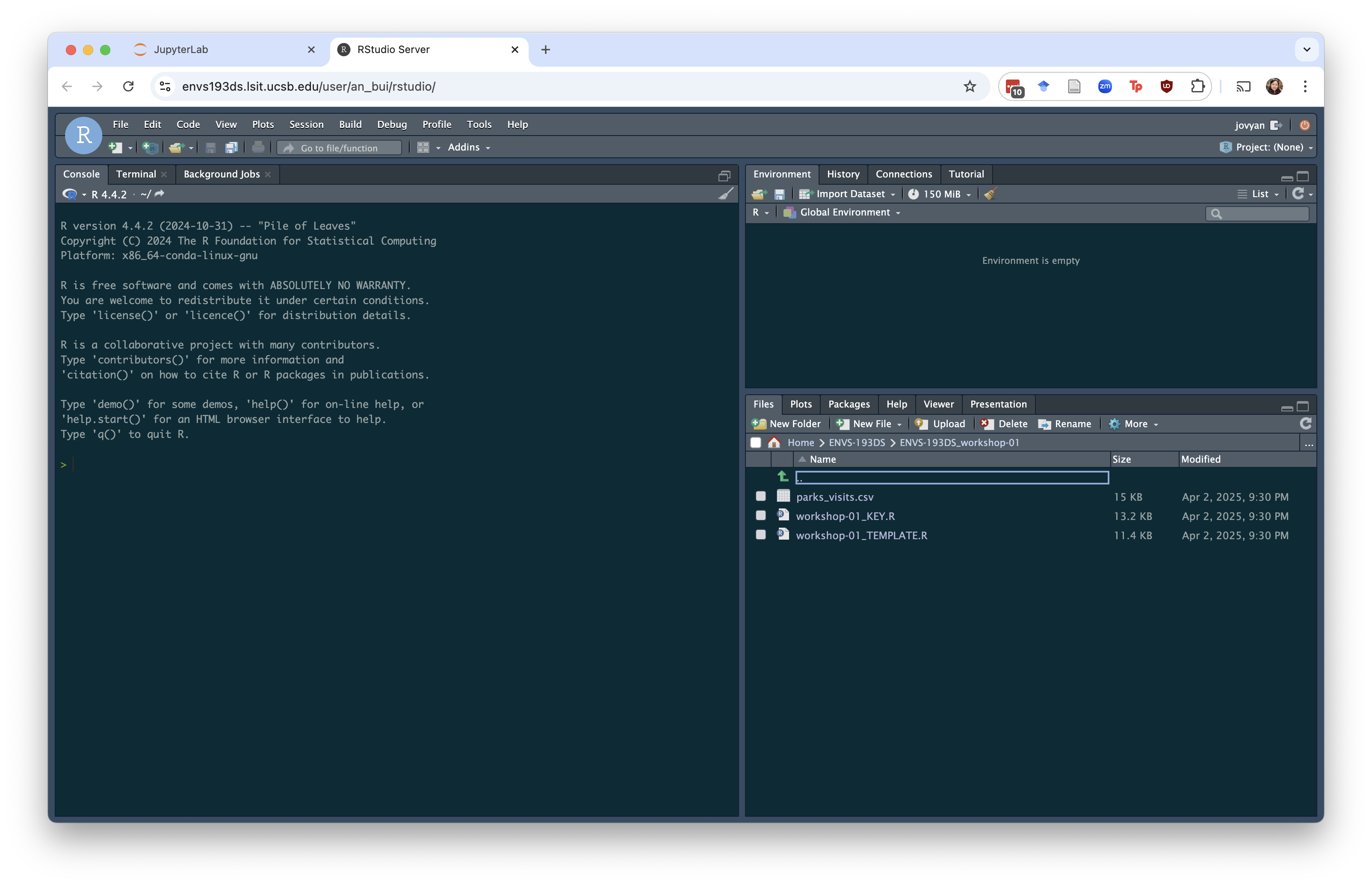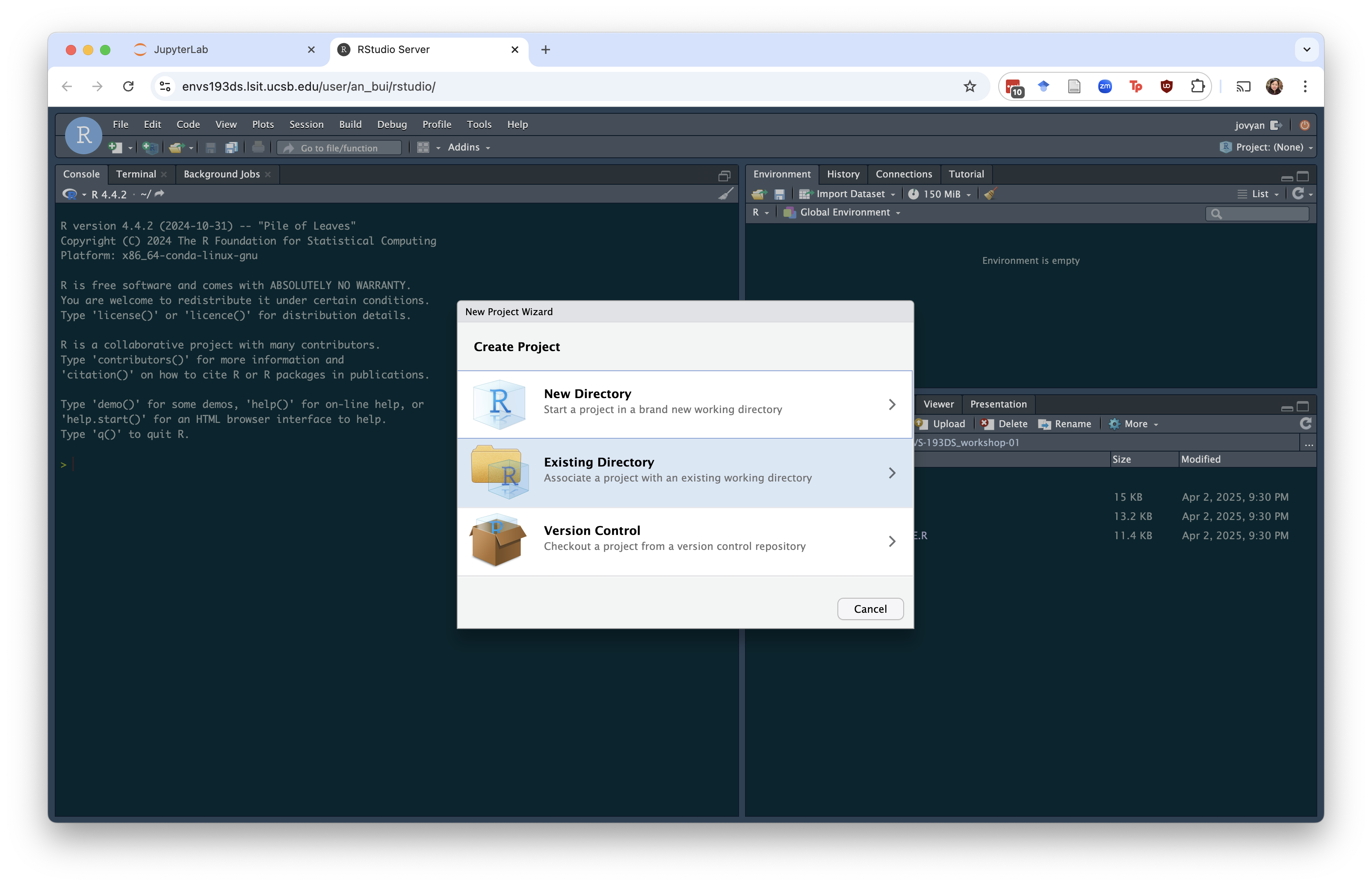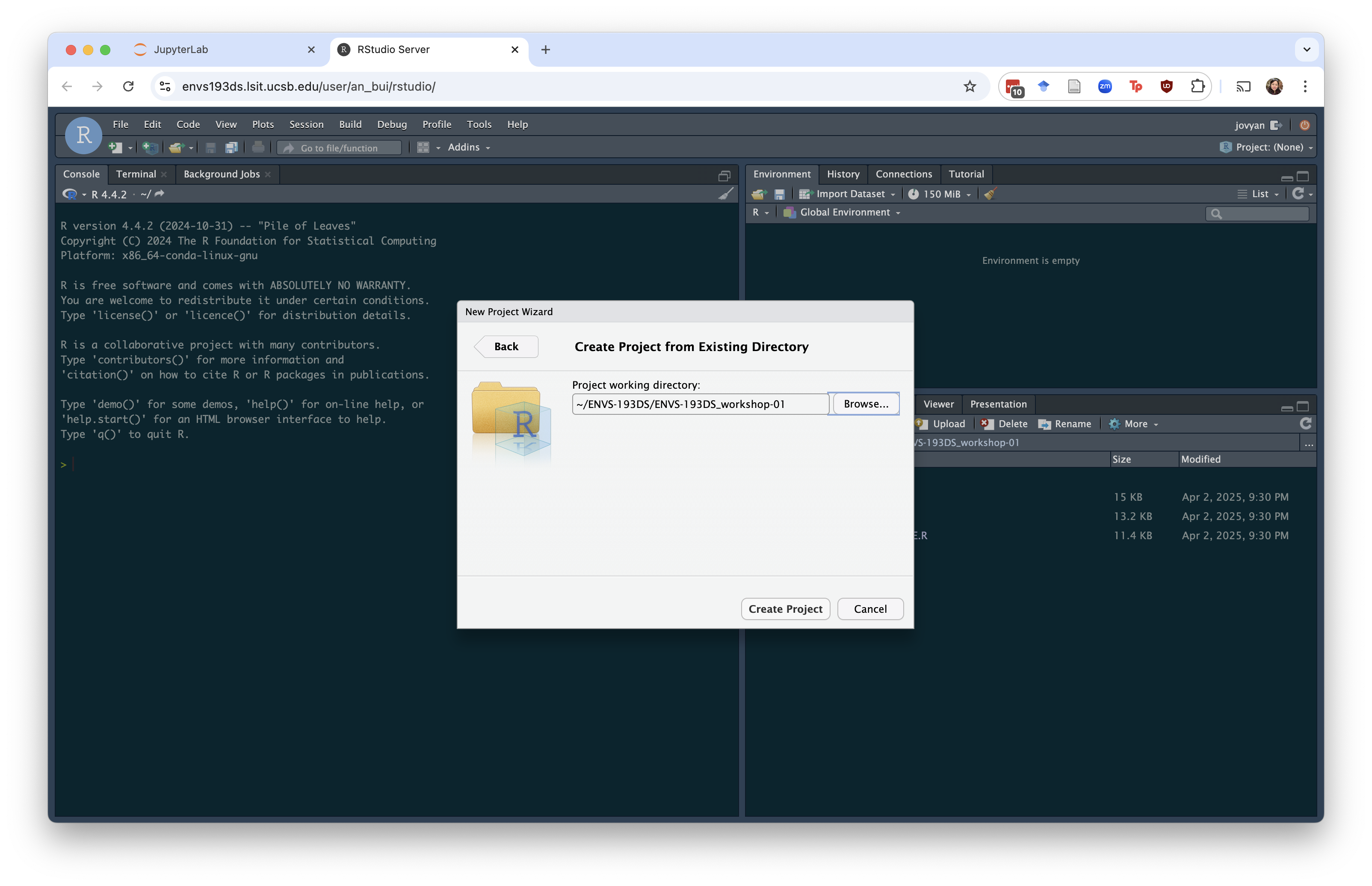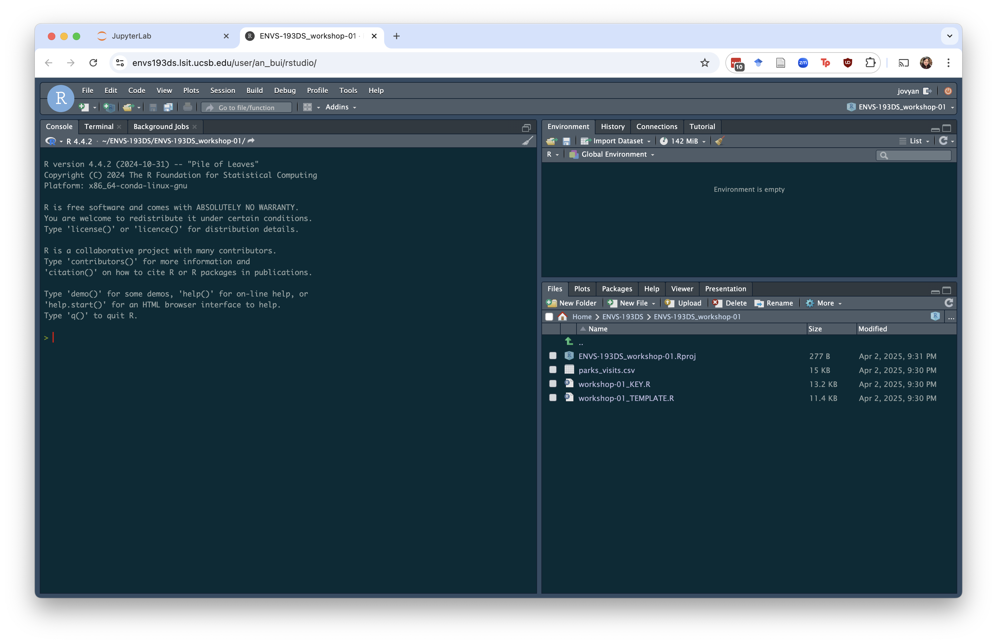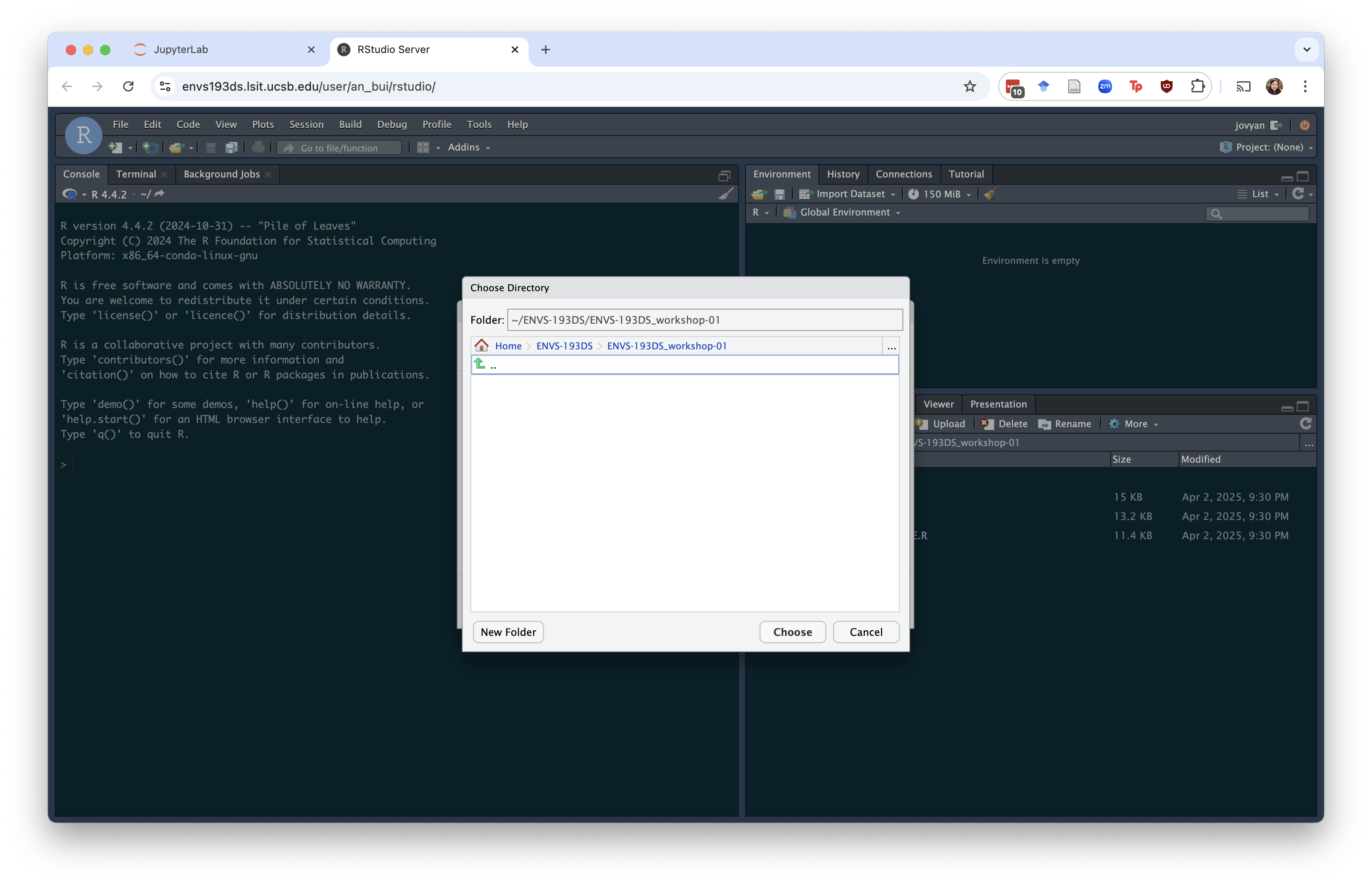 Double click the folders until you get to the one you want (in this example, I went from ENVS-193DS > ENVS-193DS_workshop-01).