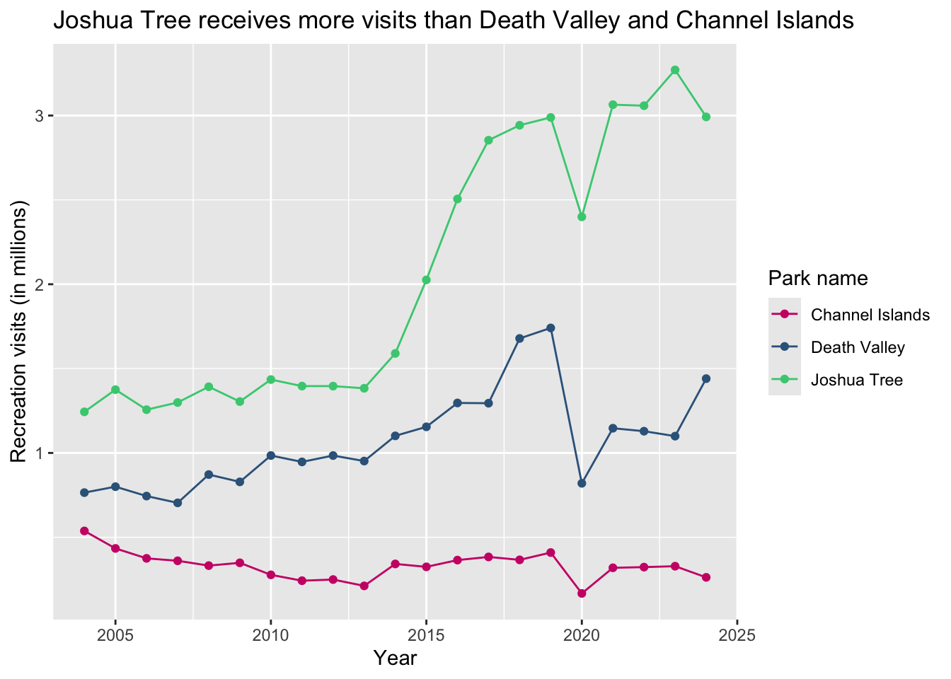 title = "Joshua Tree receives the most visits")