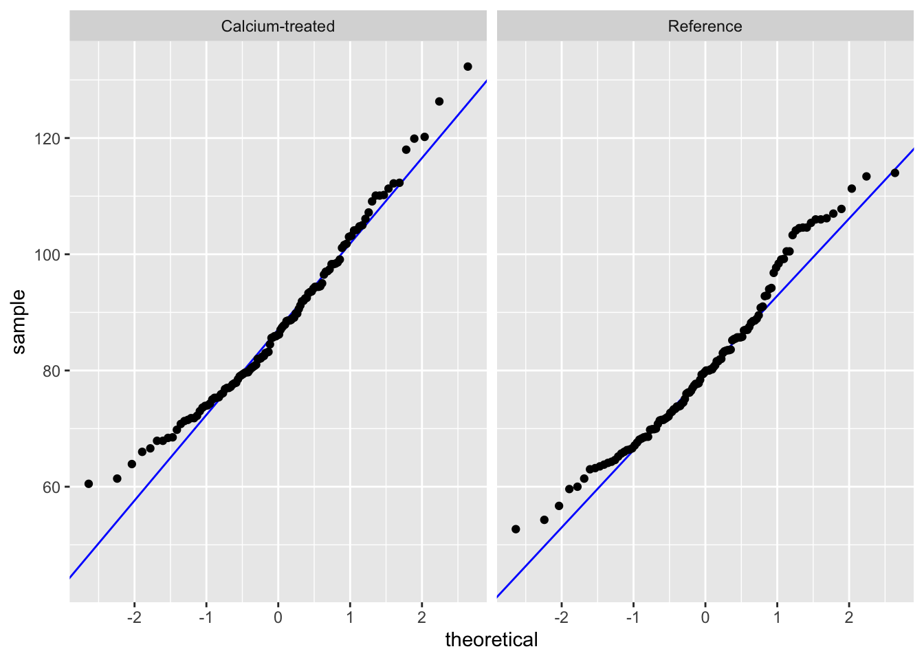 alternative hypothesis: true difference in means between group Calcium-treated and group Reference is not equal to 0